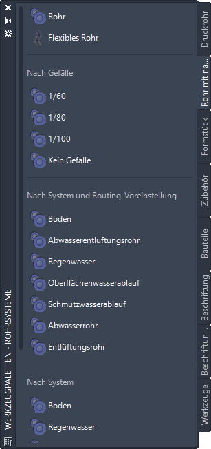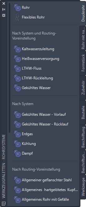 , um die Werkzeugpalette Rohrsysteme anzuzeigen.