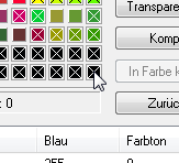 Nicht verwendete anzeigen. Die nicht in der Palette verwendeten Farben sind durch ein X gekennzeichnet.