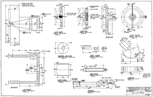 Klicken Sie auf Raster Klicken Sie, und ziehen Sie ein Rechteck um das Objekt Mandrel Rib Plate und dessen Schriftfeld. Klicken Sie dann mit der rechten Maustaste, und drücken Sie die EINGABETASTE, um die Region zu radieren. Weitere Übung: Radieren Sie noch andere Objekte, ausgenommen das Objekt Jig Bracket in der unteren linken Ecke. Verwenden Sie dazu einige der anderen Regionstypen aus dem Menü Entfernen. |