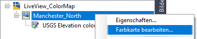 Klicken Sie in der Ansicht Bildeinfügungen mit der rechten Maustaste auf den Bildnamen der Zeichnung, und wählen Sie im Kontextmenü den Befehl Farbkarte bearbeiten. |