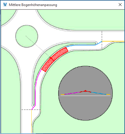 Auf vielen Seiten des Dialogfelds Kreisverkehreigenschaften sind Spalten mit Max- und Min-Werten enthalten. Diese beziehen sich auf die begrenzenden Werte, die von dem Entwurfsstandard vorgeschlagen werden, den Sie zur Verwendung ausgewählt haben. In vielen Fällen sind Sie berechtigt, diese Werte zu überschreiten. Solche Werte werden jedoch auf der Zeichnung als Warnungen und in Berichten zur Entwurfsüberprüfung als Ausnahmen angezeigt.
