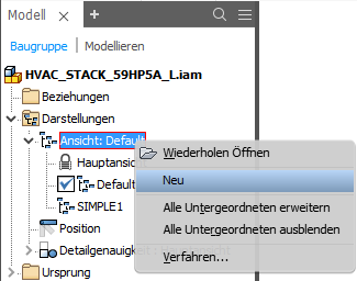 Ansichtsdarstellungen speichern den aktuellen Status einer Komponente, wenn die Ansicht erstellt, bearbeitet und schließlich gespeichert wird. In der gespeicherten Ansichtsdarstellung werden Komponentensichtbarkeit, Transparenz, Skizzensichtbarkeit, Sichtbarkeit von Arbeitselementen, Auswahlstatus und Kamerastatus, Vergrößerung, Ansichtswinkel und Bauteilansichtsdarstellungen beibehalten. In Ansichtsdarstellungen wird eine Komponente nur einmal geladen. Beim Wechsel zwischen Ansichtsdarstellungen werden keine Komponenten entfernt oder neu geladen.