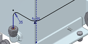 Sie können Skizzenelemente nur in einer einzigen Basisskizze auswählen. Zum Erstellen von abgeleiteten Routen können Sie Skizzenlinien und Bogen in einer Basisskizze auswählen. Splines sind keine gültige Auswahl.