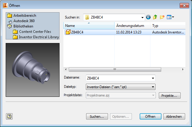 Wenn das gewünschte Bauteil in der Palette nicht verfügbar ist, navigieren Sie auf der Festplatte zu dem Bauteil.