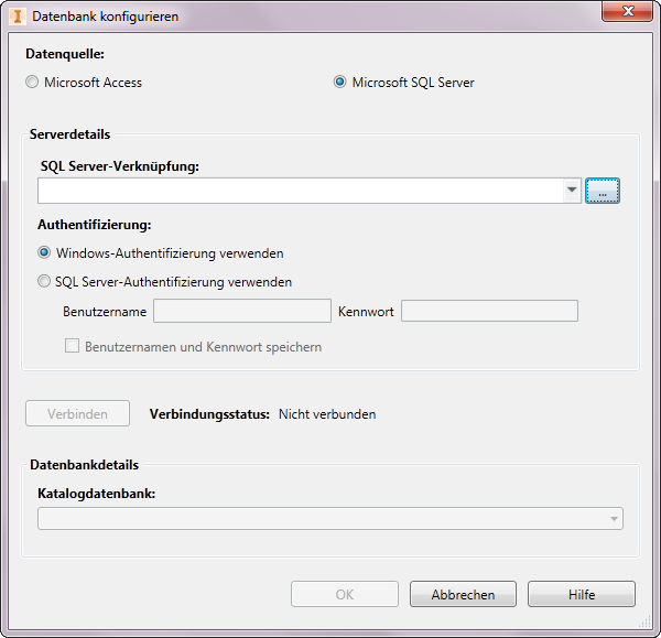 Legen Sie den Typ der Datenbank für die Quelle der Kataloginformationen fest.