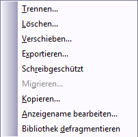 • Erweitern Sie im Fenster von ADMS Console die Bibliotheken, und klicken Sie mit der rechten Maustaste auf die zu kopierende Bibliothek.