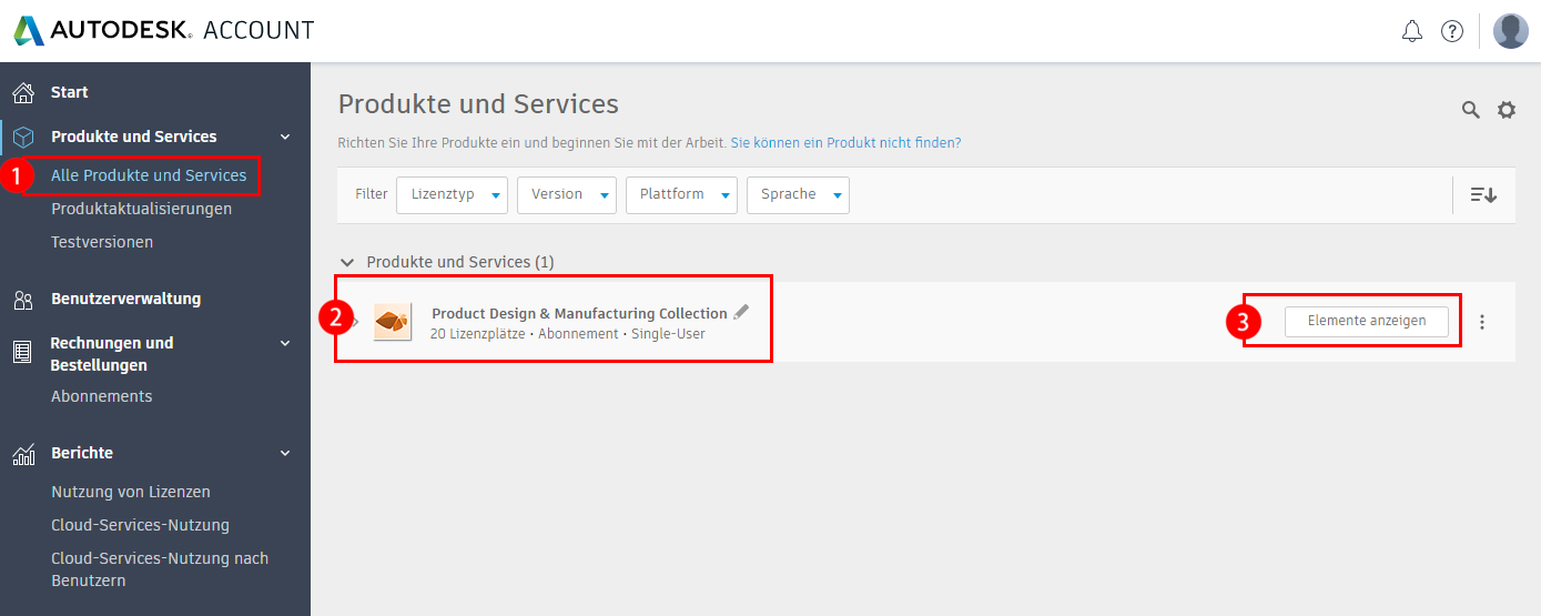 Wenn die Product Design & Manufacturing Collection nicht in dieser Liste enthalten ist, haben Sie wahrscheinlich kein Abonnement dieser Sammlung. Als weitere Schritte können Sie sich an Ihren Administrator wenden oder die kostenlose Testversion installieren, um die Software vor dem Kauf zu testen.