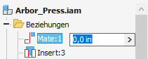 Anmerkung: Das Browser-Bearbeitungsfeld wird angezeigt, wenn Sie eine Abhängigkeit in einem Baugruppen-Browser oder eine Positionsveränderung in einem Präsentations-Browser auswählen. Das Bearbeitungsfeld wird jetzt in der Nähe des ausgewählten Elements statt am unteren Rand des Browsers angezeigt.