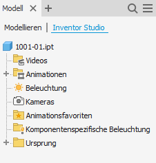 - Jetzt können Sie mühelos mit einem einzigen Mausklick zwischen Modell-, Baugruppen- und Browsern anderer Umgebungen wechseln. Wenn beispielsweise die Inventor Studio-Umgebung aktiv ist, können Sie jetzt einfach klicken, um zwischen dem Inventor Studio-Browser und dem Modellierungs-Browser zu wechseln.