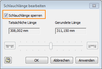 Sie können die Schlauchlänge auch sperren, indem Sie eine allgemeine Bemaßung