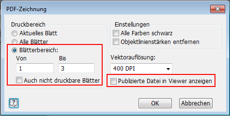 In PDF-Format exportieren - Optionen - Verbesserungen bei Zeichnungen