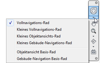 Anmerkung: Für jede Steuerfläche und Schaltfläche eines Rads werden nun QuickInfos angezeigt, wenn Sie den Cursor über das Rad bewegen. Beim Verwenden der Navigationswerkzeuge werden nun Meldungen angezeigt.