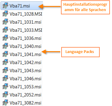 - Vba71.msi ist das Hauptinstallationsprogramm für alle Sprachen. Die anderen Installationsprogramme gelten für Language Packs. Um das entsprechende Language Pack für Ihre Sprache zu ermitteln, besuchen Sie diese Seite: https://msdn.microsoft.com/en-us/library/ms912047(v=winembedded.10).aspx. Falls zutreffend, klicken Sie mit der rechten Maustaste auf das entsprechende Installationsprogramm, und wählen Sie Installieren aus.