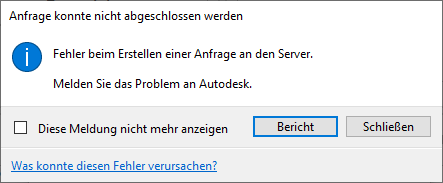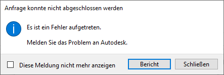 403 | Melden Sie das Problem dem Produktsupport von Autodesk. |