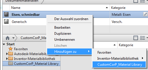 2. Klicken Sie mit der rechten Maustaste auf den Knoten Materialbibliotheken, und wählen Sie Bibliothek hinzufügen aus.