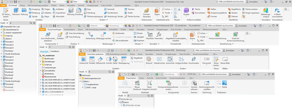 Viele Teile der Benutzeroberfläche von Inventor wurden überarbeitet, und die Darstellung wurde aktualisiert.
