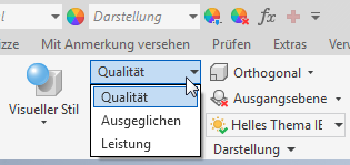 - Leistung - Hierbei ist die Leistung wichtiger als die visuelle Darstellung. Leistung ist die Vorgabeeinstellung für integrierte Baugruppenvorlagen unter Verwendung des neuen Beleuchtungsstils Helles Thema, des visuellen Stils Schattiert und keinen Schatten. Besonders für die Arbeit mit mittleren bis großen Baugruppen geeignet.