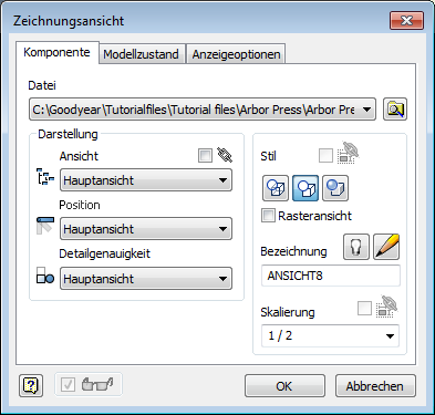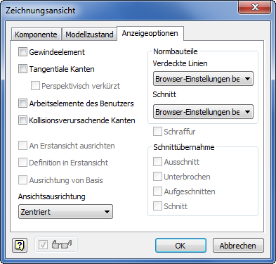 Das Dialogfeld Zeichnungsansicht wird optimiert, um neue Arbeitsabläufe mit direkter Interaktion im Grafikfenster zu unterstützen.