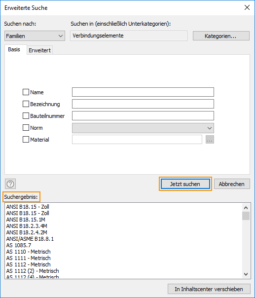 Weitere Informationen finden Sie unter So finden Sie ein Inhaltscenter-Bauteil in der Inhaltscenter-Bibliothek.