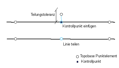 Wenn der Unterschied zwischen der alten und neuen Position des Punkts die Teilungstoleranz übersteigt, wird der Punkt nicht eingefügt, und es wird eine Meldung eingeblendet. Die Teilungstoleranz wird in den Anwendungsoptionen definiert.