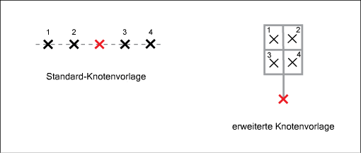 Hochspannungsmast mit zwei Leitungsabschnitten Der standardmäßige Querschnitt zeigt zwei Fangpunkte für zwei weitere Leitungsabschnitte. Verwenden Sie den standardmäßigen Querschnitt für die Datenerfassung. Der erweiterte Querschnitt dient nur der Visualisierung.