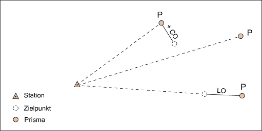 Bei Tachymetermessungen werden Längenverschiebung und Querverschiebung verwendet, wenn der Zielpunkt nicht direkt gemessen werden kann.