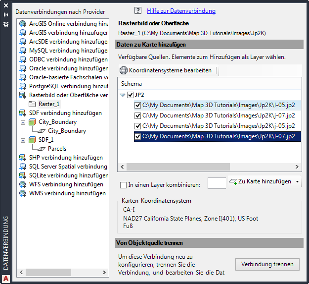 3. Wählen Sie unter Datenverbindungen nach Provider die Option Rasterbild oder Oberfläche.