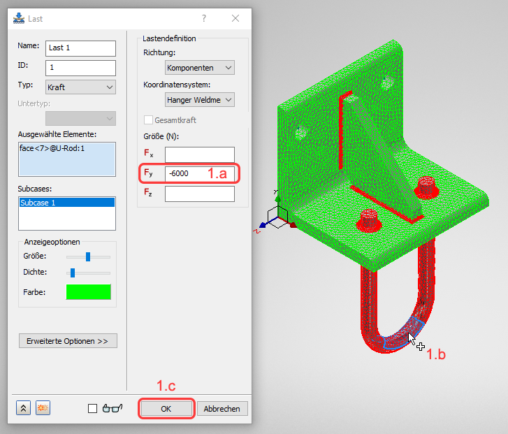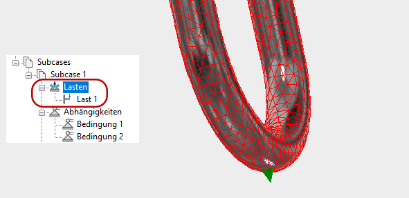 Die angeklickte Fläche wird zur Liste Ausgewählte Elemente hinzugefügt.