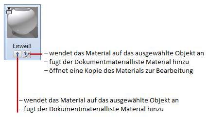 Zum Bearbeiten der Einstellungen können Sie auf ein Materialmuster doppelklicken oder das Kontextmenü verwenden.