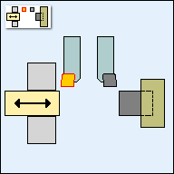 The tool in use during the process is shown in yellow. The tool that is not cutting is shown in gray. For example: