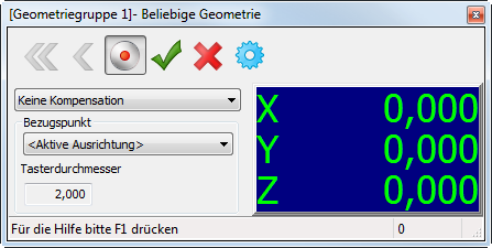 - Keine Kompensation aus, um den Tastnadelmittelpunkt als Tasterposition wiederzugeben.