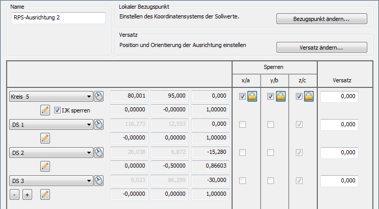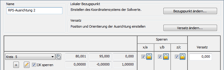 Die Sperren-Spalte zeigt den Sollwert jedes Punkts an.