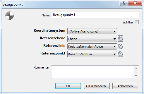 3. Wenn Sie den Bezugspunkt in der CAD-Ansicht anzeigen möchten, wählen Sie das Sichtbar-Kontrollkästchen aus.