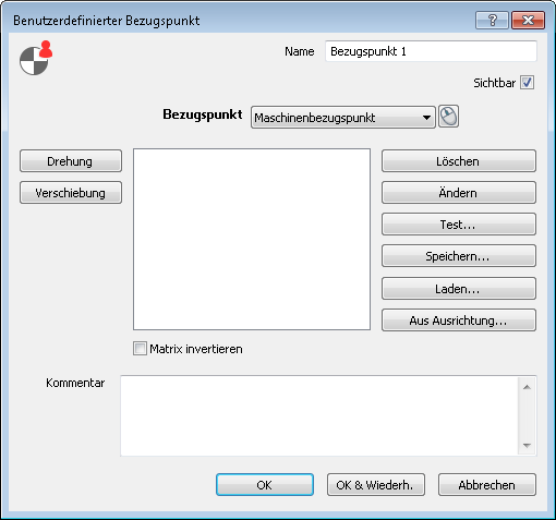 - Legen Sie die Transformationsmatrix fest, um den Bezugspunkt zu definieren. Klicken Sie auf: