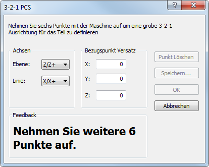 - Nehmen Sie sechs Punkte auf dem Bauteil mithilfe der 3-2-1-Regel auf: