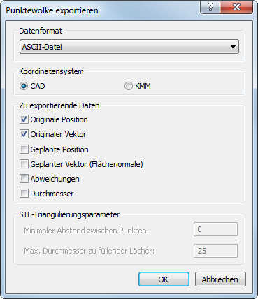 - Abweichungen aus, um den Abstand zwischen der Punktposition und der CAD-Fläche zu exportieren.