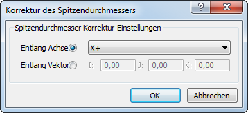 - Klicken Sie im PowerInspect DRO-Dialog auf Kompensation einschalten. Der Korrektur des Spitzendurchmessers-Dialog wird angezeigt.