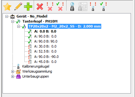 Geben Sie Taster für CNC-Maschinen oder manuelle KMM für das Dokument an, und kalibrieren Sie sie. Kalibrieren Sie außerdem die Tasterbaugruppen.