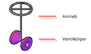 Sie können einer Armatur in der Rohrklasse im Katalog oder im 3D-Modell Armaturenantriebe zuweisen.