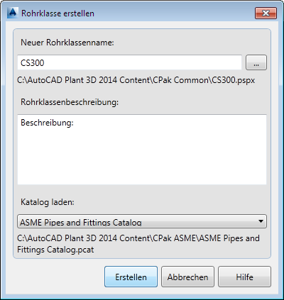 Ermöglicht das Erstellen einer Rohrklassendatei.