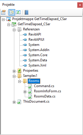 Navigieren Sie außerhalb der IDE in Windows Explorer zu den Revit-Installationsordnern, und suchen Sie den Ordner AppHookup. Beachten Sie, dass die entsprechenden Unterordner \Samples\Rooms unter diesem Pfad erstellt wurden.
