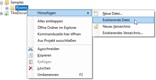 Klicken Sie im Projektexplorer der IDE mit der rechten Maustaste auf das Makroprojekt, und wählen Sie Hinzufügen