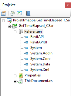In diesem Beispiel enthält der aktualisierte IDE-Projektexplorer für GetTimeElapsed_CSharp die folgenden Einträge: