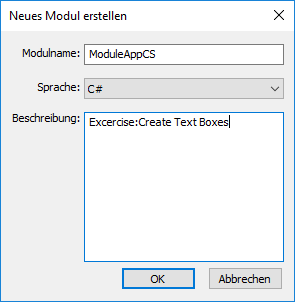 Das Dialogfeld Neues Modul erstellen wird geöffnet.