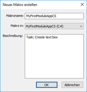 - Identifizieren des Modul-Namespace (MacroAppCS in der Abbildung oben)