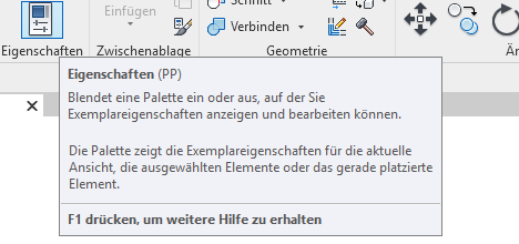 Wenn Sie den Mauszeiger auf ein Werkzeug in der Multifunktionsleiste setzen, zeigt Revit standardmäßig eine QuickInfo an. Die QuickInfo gibt eine kurze Beschreibung des Werkzeugs. Wenn Sie den Mauszeiger für etwas längere Zeit auf dem Werkzeug belassen, werden weitere Informationen angezeigt (sofern vorhanden). Während die QuickInfo angezeigt wird, können Sie durch Drücken der F1-Taste kontextabhängige Hilfe mit weiteren Informationen zu diesem Werkzeug aufrufen.