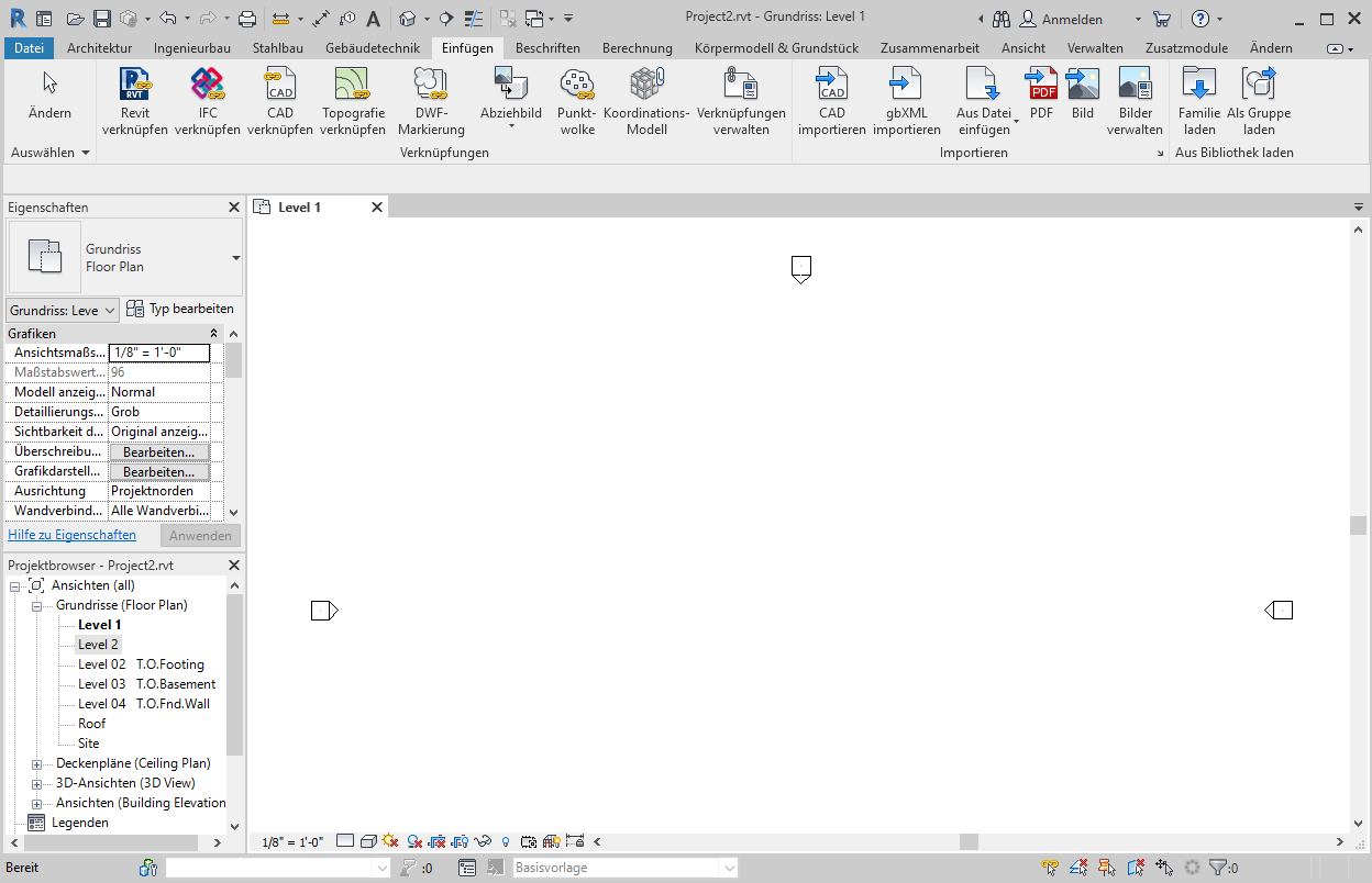| Anzeigen einer Projektansicht, die noch nicht geöffnet wurde | Navigieren Sie zu der Ansicht im Projektbrowser, und doppelklicken auf den Ansichtsnamen. |
