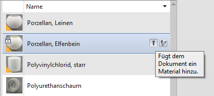 Um dem aktuellen Projekt ein Material hinzuzufügen, suchen Sie dieses zuerst in einer bestehenden Bibliothek. Anschließend haben Sie folgende Möglichkeiten: