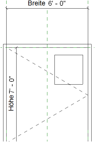 Sie haben einer Feuerschutztür mit beschrifteter Breitenbemaßung ein rechteckiges Fenster hinzugefügt, ohne eine Bemaßung für das Fenster anzugeben.