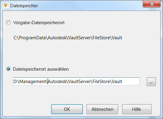 - Übernehmen Sie im Dialogfeld Dateispeicher das Standardverzeichnis für den Dateispeicher, oder geben Sie dafür ein neues Verzeichnis an.